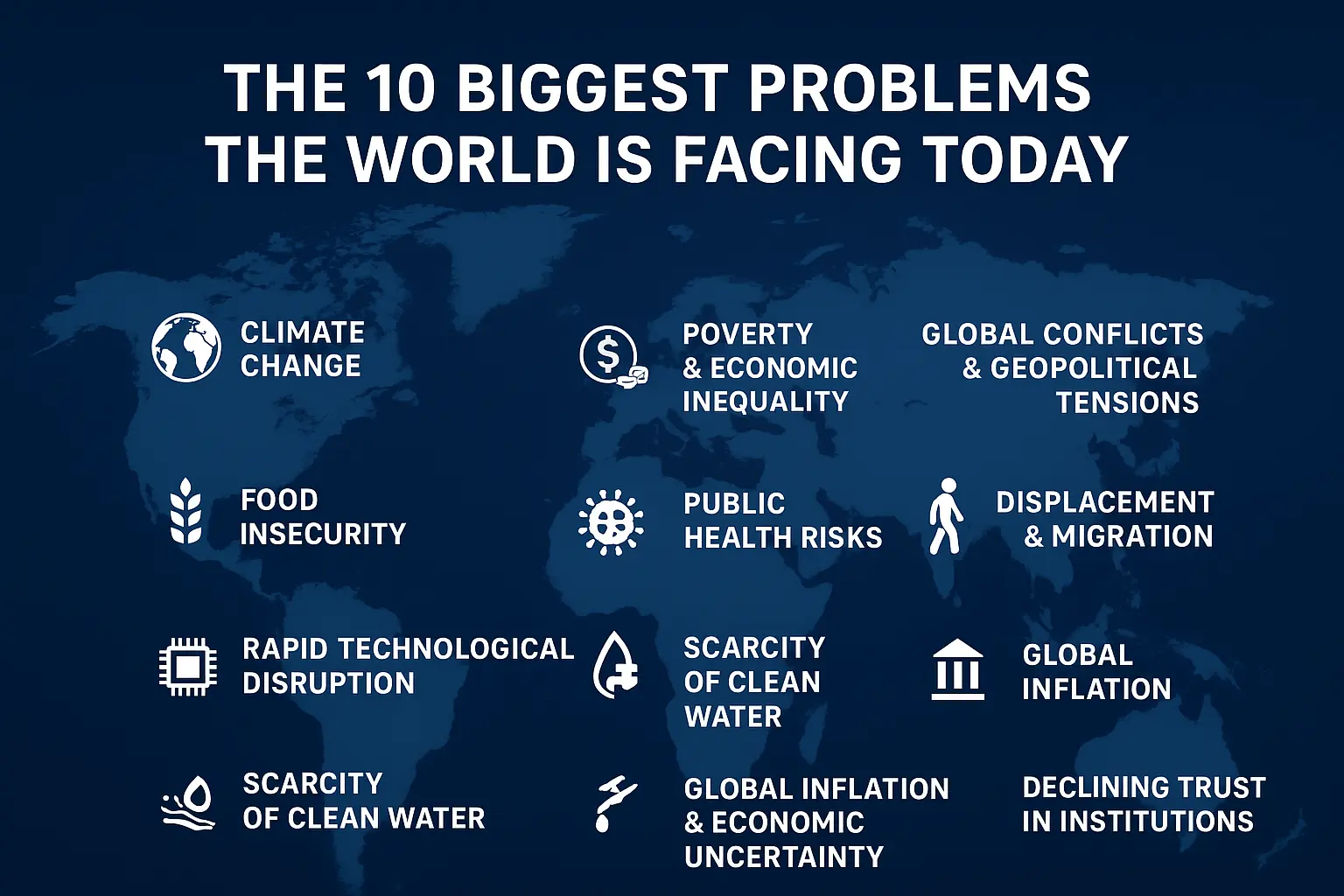 This article highlights the 10 biggest challenges the world faces today, based on research from the United Nations and the World Bank. The goal is to provide a clear, balanced, and ad-friendly overview of the key issues shaping the planet’s future.